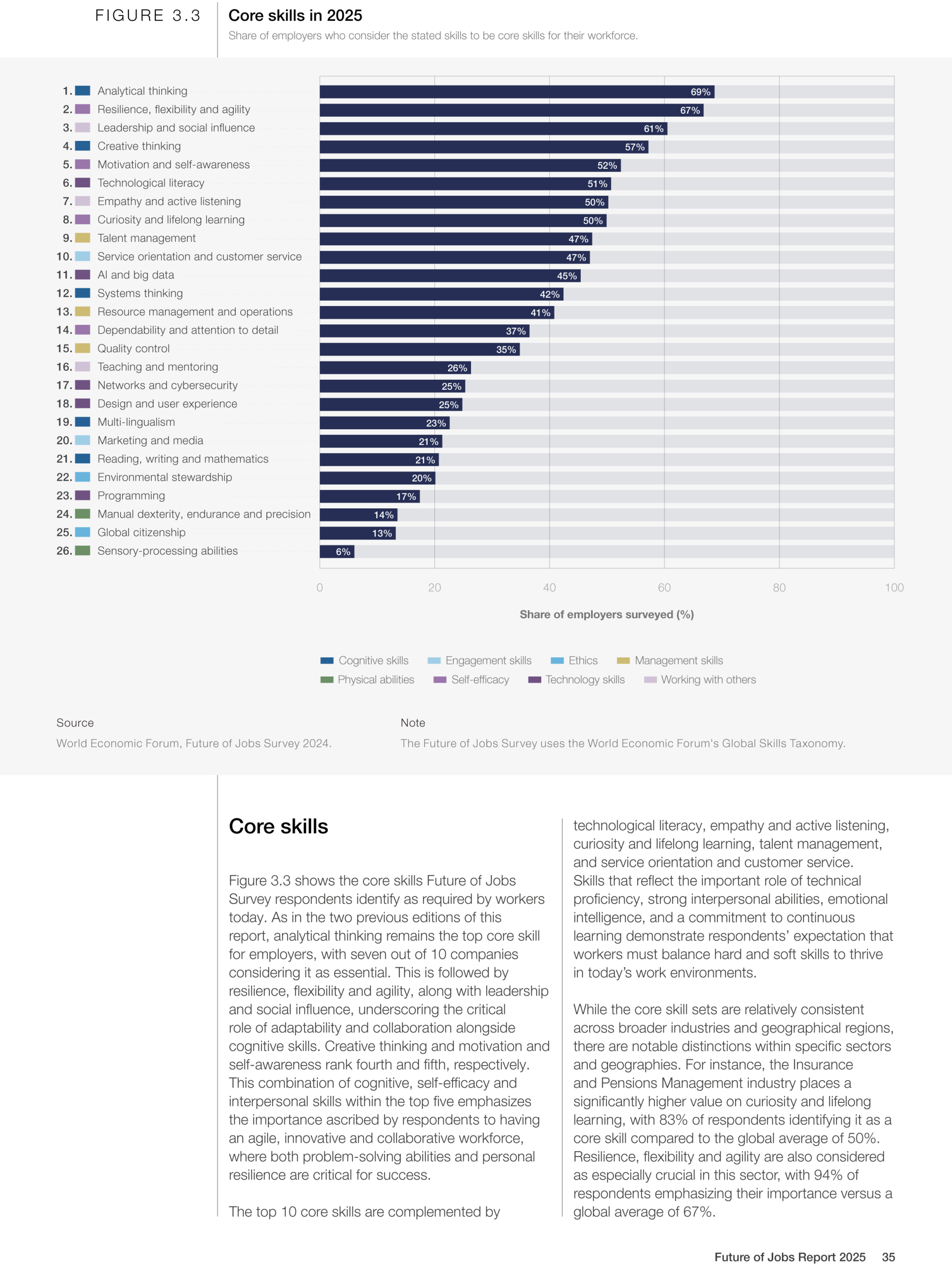 Lo más revelador no es solo que está creciendo, sino dónde está. El informe la sitúa en la categoría de «Habilidades Centrales en 2030», es decir, es «esencial ahora y se espera que aumente en importancia». No es algo que emerja en el futuro; ya es crítica hoy y se volverá aún más.